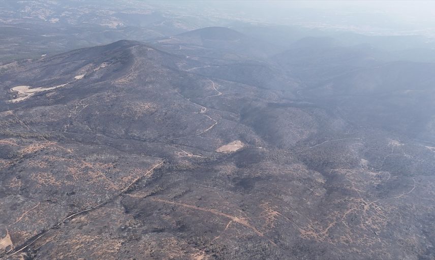 Bursa'nın Orhaneli ve Harmancık ilçeleri arasındaki orman yangını 5. gününde kontrol altına alınmaya çalışılıyor. Bölge havadan fotoğraflandı.