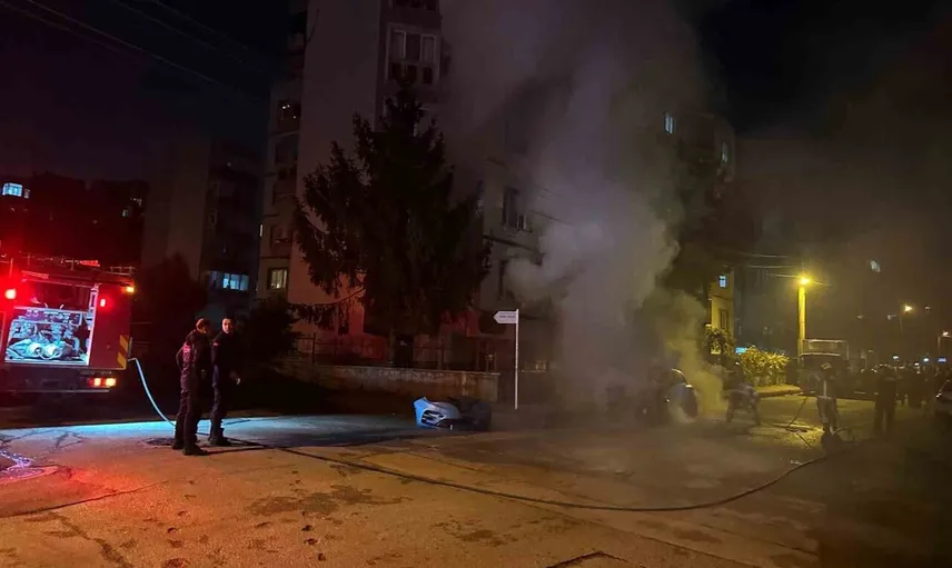 Bursa'nın merkez Nilüfer ilçesinde seyir halindeki bir otomobilde yangın çıktı. Edinilen bilgiye göre, araç hareket halindeyken bir anda dumanlar yükselmeye başladı ve kısa sürede elektrikli otomobil alevlere teslim oldu.