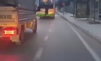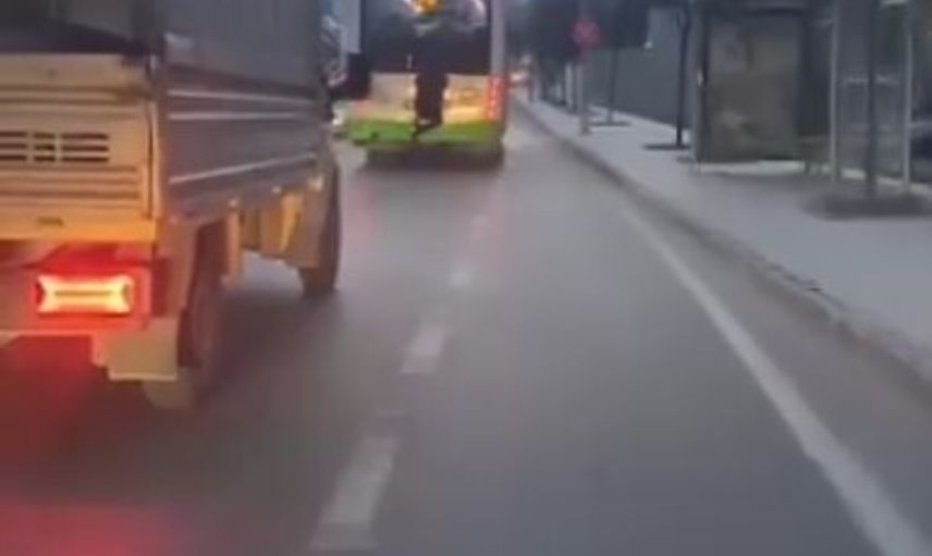 Ardından kayıtlarda, bir gencin seyir halindeki halk otobüsünün arka tamponuna tutunarak gizli bir yolculuk yaptığı anlar yer aldı. Genç, tehlikeye aldırış etmeden otobüsle birlikte ilerledi.