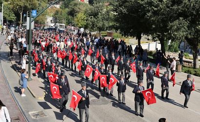 Yürüyüşün ardından Bursa Valisi Erol Ayyıldız ve Büyükşehir Belediye Başkanı Mustafa Bozbey, Atatürk Anıtı’na çelenk bıraktı. Tören, saygı duruşu ve İstiklal Marşı'nın okunmasıyla devam etti.