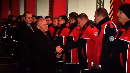Başkan Dr. Memduh Büyükkılıç, 2026'ya girerken polis, itfaiye ve zabıta ekiplerini ziyaret ederek gece nöbetindeki personele teşekkür etti ve yeni yıllarını kutladı.