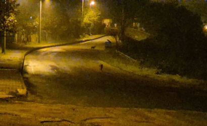 Bartın merkezindeki Aladağ Mahallesi’ne bağlı 13 Nolu sokak üzerinde bir gece önce görülen çakallar, bu kez sürü halinde kayda geçti. İl Emniyet Müdürlüğü binasına yaklaşık 350 metre uzaklıktaki Yıldızkent Sitesi önündeki çöp konteynerlerinin etrafında dolaşan iki çakal, site bahçesine girerek yiyecek aradı.