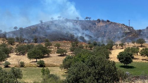 Çanakkale'nin Ayvacık ilçesinde bozuk orman alanında çıkan yangına havadan ve karadan müdahale ediliyor. Yangın köyü tehdit etmiyor.