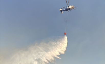 Çanakkale'nin Bayramiç ilçesinde tarım arazisinde çıkan yangına havadan ve karadan müdahale ediliyor.