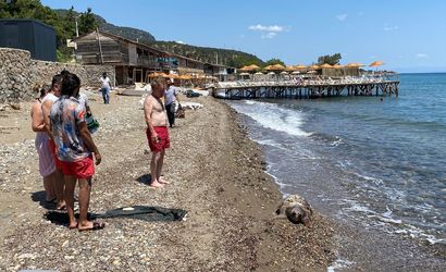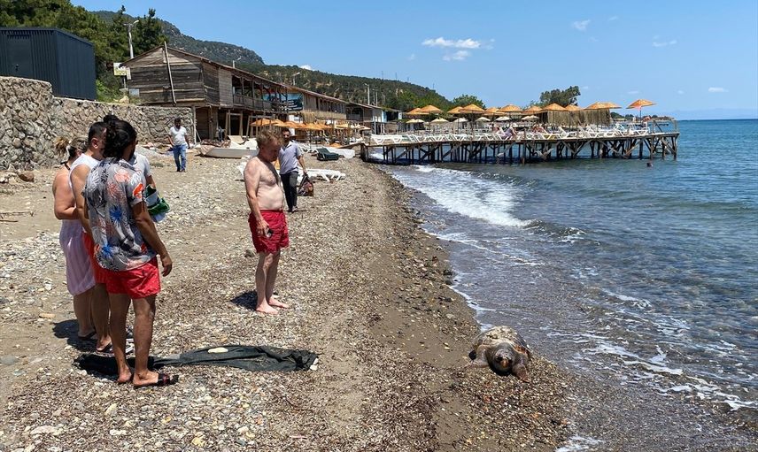 Çanakkale'nin Ayvacık ilçesine bağlı Assos Sahili'nde, denize giren tatilciler tarafından ölü bir caretta caretta deniz kaplumbağası bulundu.