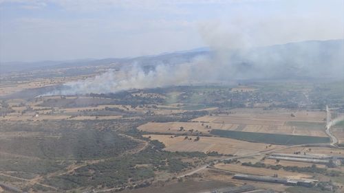 Çanakkale Biga'da çıkan orman dışı yangın, havadan ve karadan başarılı müdahale ile kontrol altına alındı.