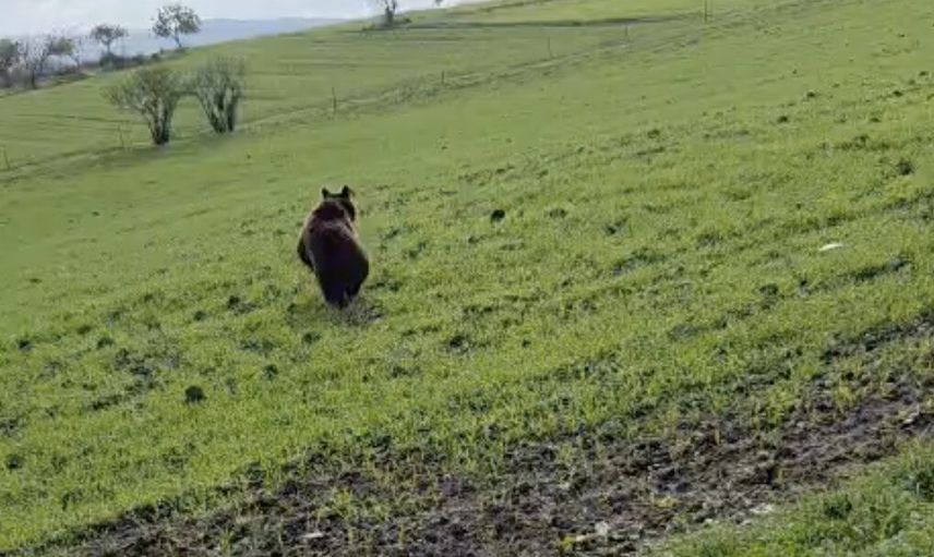 Görüntülerde ayının, yoldan geçen diğer araçlardan ürkerek kırsal alana doğru kaçarak gözden kaybolduğu görüldü.