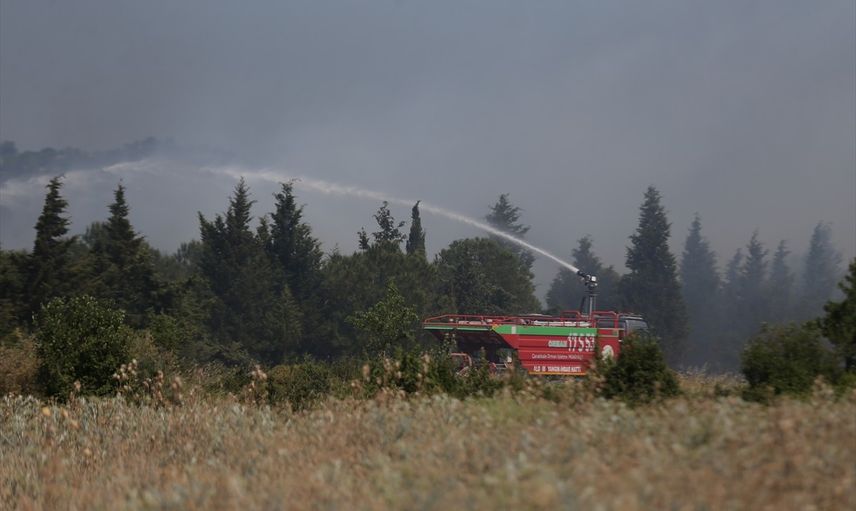 Çanakkale'nin Merkeze bağlı Özbek köyündeki tarım arazisinde, bilinmeyen bir nedenle başlayan yangına havadan ve karadan müdahale ediliyor. Yangının hızla yayılması nedeniyle bölgeye Orman Bölge Müdürlüğü'ne ait uçak ve helikopterler ile yer ekipleri sevk edildi.