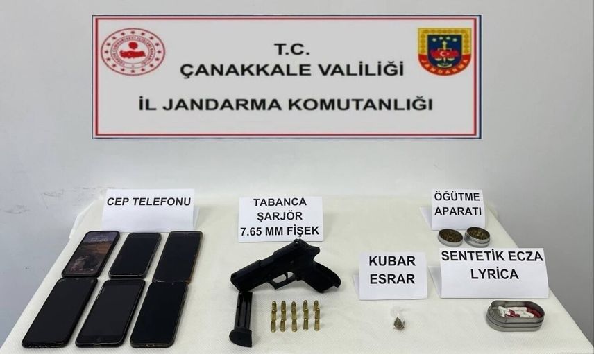 Ele geçirilenler: 36 gram kubar esrar, 35 gram sentetik kannabinoid hammadde, 17 gram sentetik kannabinoid, 10 gram skunk, 10 gram kenevir tohumu, 10 adet sentetik ecza, 2 adet ruhsatsız 9 milimetre tabanca, 1 adet ruhsatsız 7.65 milimetre tabanca, 65 adet 9 milimetre fişek, 15 adet 7.65 milimetre fişek, uyuşturucu öğütme aparatı, 3 adet uyuşturucu kullanma aparatı (payp), 29 adet uyuşturucu kullanma aparatı (kova), 6 adet cep telefonu ve 3 bin 200 TL suç geliri para.