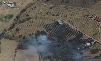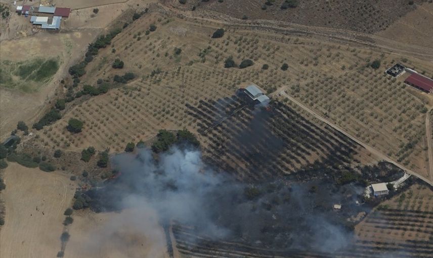 Çanakkale'nin Ayvacık ilçesinde zirai alanda çıkan yangına havadan ve karadan müdahale ediliyor. Yangın bölgesi, Anadolu Ajansı ekibince Orman Genel Müdürlüğüne ait helikopterle havadan görüntülendi.