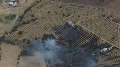 Çanakkale Ayvacık'ta zirai alanda çıkan yangına hem havadan hem de karadan müdahale sürüyor.
