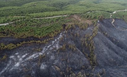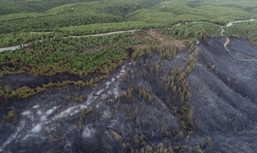 Çanakkale'de 21 saattir devam eden orman yangınının zarar verdiği Tarihi Gelibolu Yarımadası dron ile görüntülendi.
