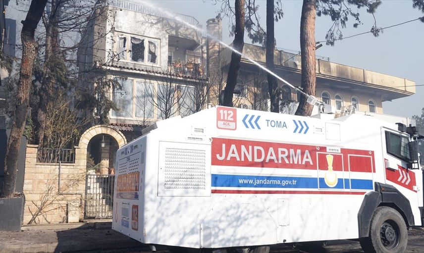 Çanakkale'nin merkez ilçesine bağlı Kepez beldesinde çıkan orman yangınına havadan ve karadan müdahale ediliyor. Jandarma ekipleri, Toplumsal Olaylara Müdahale Aracı (TOMA) ile yangın söndürme çalışmalarına katıldı.