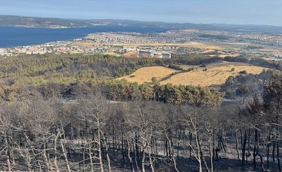 Çanakkale'de tarım arazisinde başlayıp ormanlık alana sıçrayan ve büyük oranda kontrol altına alınan yangınla ilgili ekiplerin çalışmaları 2. gününde devam ediyor. Yangından etkilenen alanlar görüntülendi.