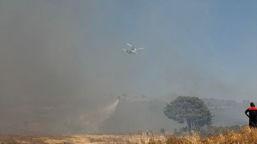 Çanakkale Kemel köyünde orman dışı alanda çıkan yangına, Orman Bölge Müdürlüğü'ne bağlı hava ve kara ekipleri müdahale ediyor; amaç yangının ormanlık alana sıçramasını önlemek.
