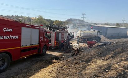 Çanakkale'nin Çan ilçesine bağlı Yayaköy Mahallesi'nde bulunan bir ahırda, içinde büyükbaş hayvanların bulunduğu alanda henüz belirlenemeyen nedenle yangın çıktı.