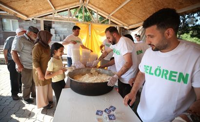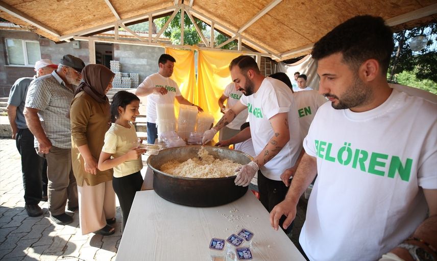 Çankırı'nın Ilgaz ilçesine bağlı Belören'de köylüler, imece usulüyle keşkek yapma geleneğini sürdürüyor. Köy derneği tarafından toplanan yardımlarla alınan malzemeler, odun ateşinde bakır kazanlarda pişirildi.