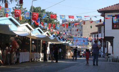 Sanat Sokağı'nda kaligrafi, çini, keçe, resim ve sepet örgü gibi geleneksel ve çağdaş sanat örnekleri ziyaretçilerle buluşuyor.