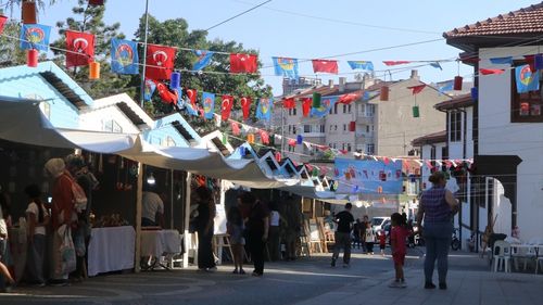 Çankırı'da 4. Uluslararası Tuz Festivali kapsamında Uzunyol Caddesi'ne kurulan Sanat Sokağı açıldı; kaligrafi, çini, keçe, resim ve halk oyunları sergilendi.