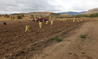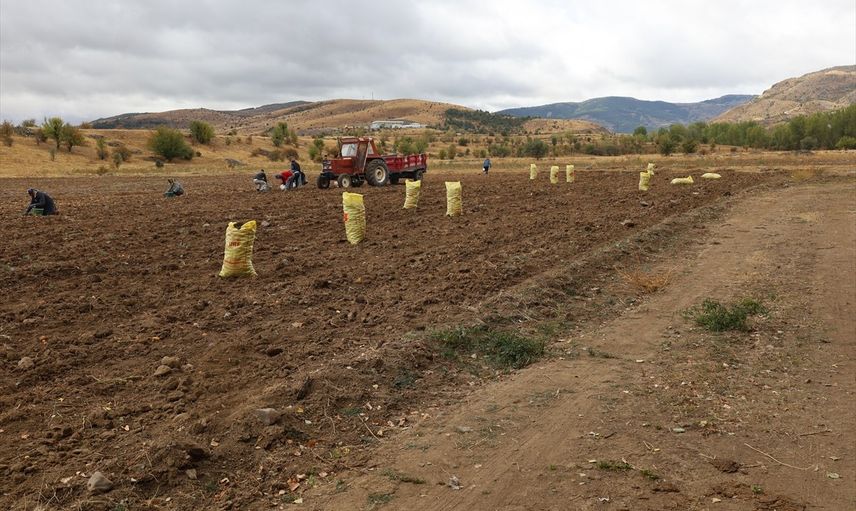 Çankırı'nın Orta ilçesine bağlı Dodurga beldesinde, atıl durumdaki bir araziye ekilen patateslerin hasadına başlandı.