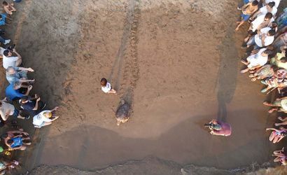 Muğla'nın Ortaca ilçesindeki Deniz Kaplumbağası Araştırma Kurtarma Rehabilitasyon Merkezi (DEKAMER) tarafından gerçekleştirilen etkinlikte, uydu takip cihazıyla izlenen caretta caretta 'Tuba', yeniden geldiği İztuzu plajında, ikinci kez dünya turuna uğurlandı. 2019 yılında denize bırakılan Tuba, bu kez teknolojik bir cihaz ile desteklenecek.