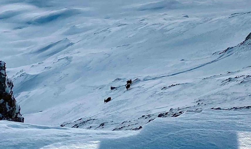Bölgede etkili olan kar yağışı nedeniyle dağ keçilerinin yüksek kesimlerden daha aşağı rakımlara indiği gözlemlendi. Görüntüler, ilçede yaban hayatının zorlu kış koşullarında nasıl etkilendiğine dair önemli bir örnek oluşturdu.