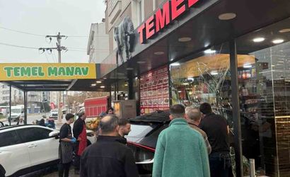 Kaza anı, iş yerinin güvenlik kamerası tarafından kaydedildi. Görüntülerde, kontrolden çıkan aracın iş yerine yöneldiği ve o sırada kapı önünde bulunan müşterinin adım atmasıyla saniyelerle aracın altında kalmaktan kurtulduğu anlar yer alıyor.