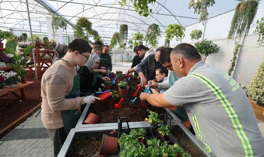 Daha sonra sera alanına geçen özel bireyler, Park ve Bahçeler Müdürlüğü çalışanları eşliğinde mevsimlik bitkileri saksılarla buluşturdu. Uygulamalı olarak menekşe ekimi yapan katılımcıların etkinlikten duyduğu mutluluk dikkat çekti.