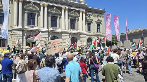 Cenevre'de binlerce kişi, İsrail'in Gazze'deki soykırımını protesto etmek için yürüdü ve Filistin'e destek verdi.