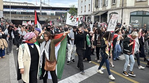 Cenevre'de binlerce kişi, Filistin için destek yürüyüşü düzenleyerek İsrail'in saldırılarını protesto etti.