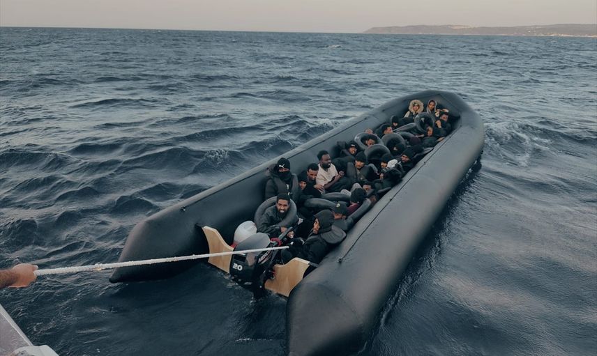 İzmir'in Çeşme ilçesi açıklarında sürüklenen lastik bottaki 34 düzensiz göçmen, Sahil Güvenlik Komutanlığı ekipleri tarafından kurtarıldı. Kurtarılan göçmenler arasında 3 çocuk da bulunuyor.