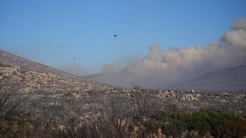 Çeşme'de ziraat alanında çıkan yangın, rüzgarın etkisiyle ormanlık alana sıçradı. Müdahale sürüyor.