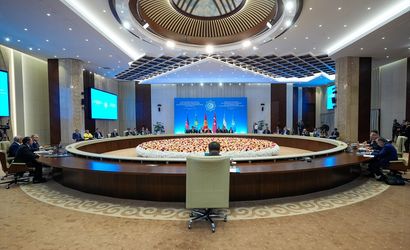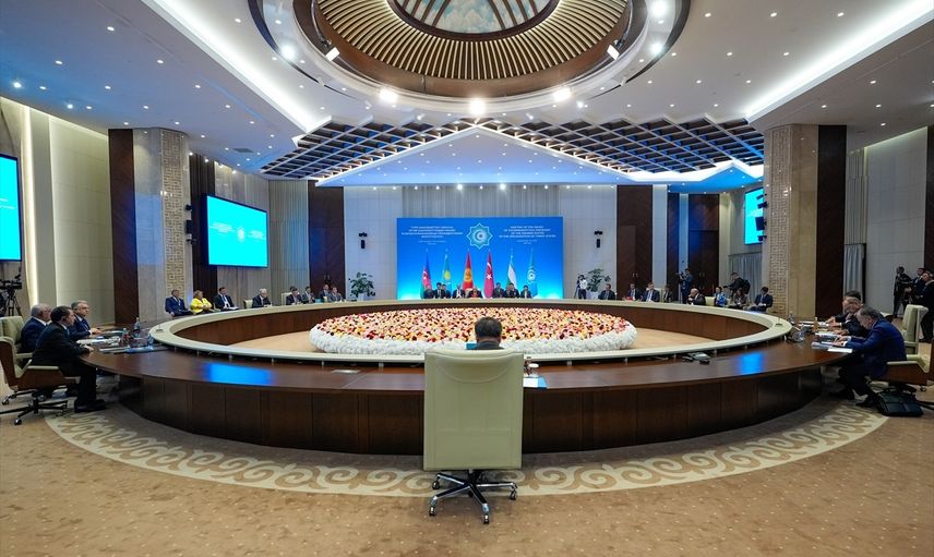 Cumhurbaşkanı Yardımcısı Cevdet Yılmaz (sağ 2), Bişkek’te, Türk Devletleri Teşkilatı (TDT) Üye Devletlerinin Hükümet Başkanları ve Cumhurbaşkanı Yardımcıları Toplantısı'na katıldı. Toplantıda Kırgızistan Bakanlar Kurulu Başkanı Adılbek Kasımaliyev (sağ 3), Azerbaycan Başbakanı Ali Asadov (sol 2), Kazakistan Başbakanı Oljas Bektenov (sol 3), Özbekistan Başbakanı Abdulla Aripov (sağda) ve TDT Genel Sekreteri Kubanıçbek Ömüraliyev (solda) de yer aldı.
