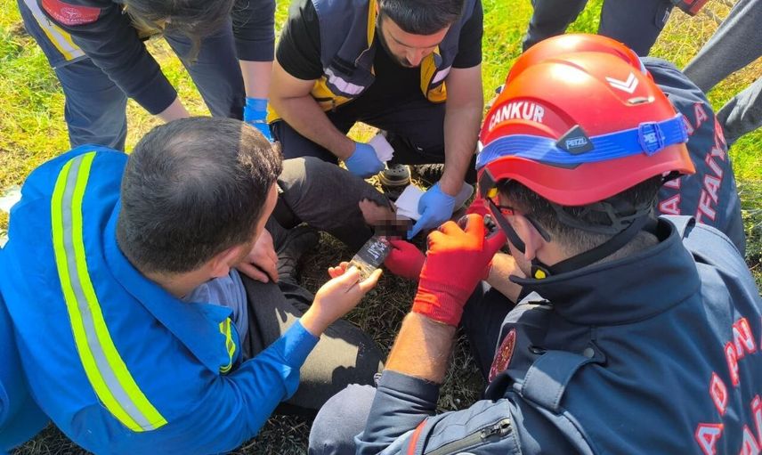 Ceyhan'da Motorlu Testereye Sıkışan Kişi İtfaiye Tarafından Kurtarıldı