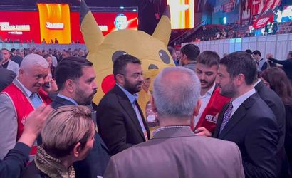 Büyük ilgi gören Pikachu kostümlü şahısla çok sayıda delege ve ziyaretçi fotoğraf çektirdi; görüntüler kurultay alanında dikkat çekti.