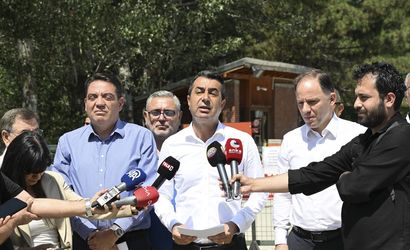 CHP Genel Başkan yardımcıları Erhan Adem, Yankı Bağcıoğlu ve Deniz Yavuzyılmaz orman yangınlarıyla mücadeleye ilişkin Eymir Gölü girişinde basın açıklaması yaptı.