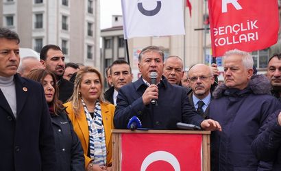 CHP Grup Başkanvekili Murat Emir, Giresun Milletvekili Elvan Işık Gezmiş, Çanakkale Milletvekili İsmet Güneşhan, meclis üyeleri ve partililer Cumhuriyet Meydanı'nda bir araya geldi.