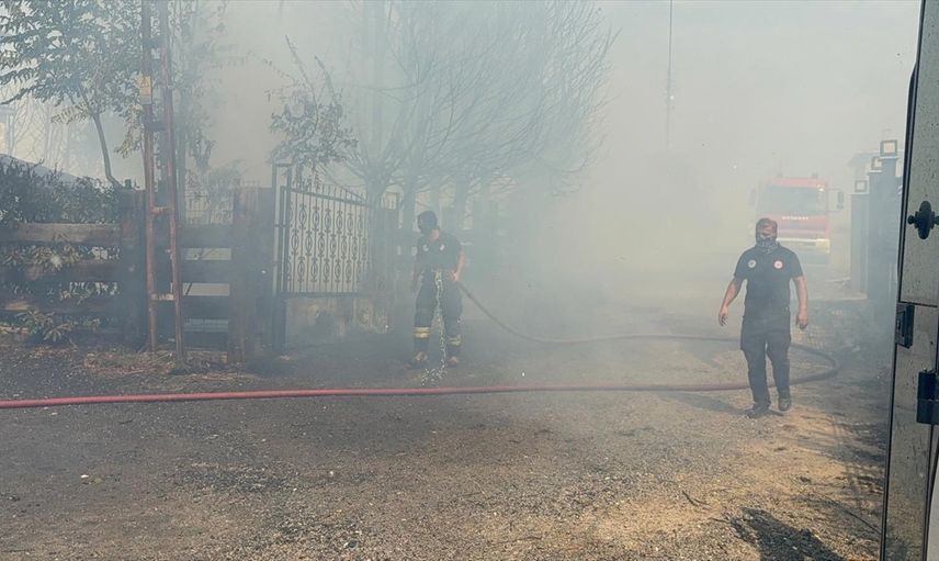 Tekirdağ'ın Çorlu ilçesinde, Önerler Mahallesi'nde otluk alanda henüz bilinmeyen nedenle çıkan yangın, rüzgarın etkisiyle çevredeki yapılara sıçradı.