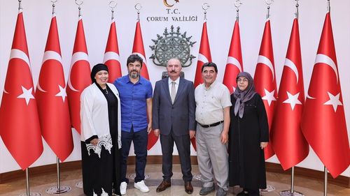 Çorum Valisi Ali Çalgan, 15 Temmuz 2016'da yaralanan gazi Telat Kahyaoğlu'na Cumhurbaşkanlığı tarafından verilen Devlet Övünç Madalyası ve Beratı'nı takdim etti.