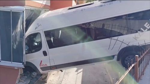 Çorum'da okul servisinin evin balkonuna çarpması sonucu 2 öğrenci yaralandı ve hastaneye kaldırıldı.