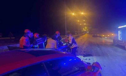 Çarpmanın etkisiyle otomobil yola savrulurken, araçta yolcu olarak bulunan Yaşar Kağan Akgül (22) sıkıştı. Kazayı gören vatandaşların 112 Acil Çağrı Merkezi'ne ihbarı üzerine olay yerine sağlık, polis ve itfaiye ekipleri sevk edildi.