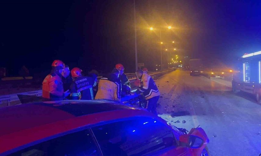 Çorum-Samsun kara yolunda meydana gelen kazada, Gökay T. (21) idaresindeki 06 BUJ 416 plakalı Volkswagen otomobil, aynı yönde seyreden Sefa T. (22) yönetimindeki 71 ADZ 165 plakalı tıra arkadan çarptı.