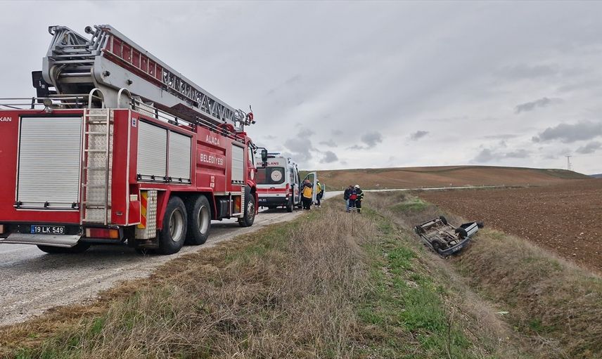 Hüseyin Ö.'nün direksiyon hakimiyetini kaybetmesi sonucu otomobil, yoldan çıkarak şarampole devrildi. Kazada sürücü Hüseyin Ö. ve yanındaki Nuriye Ö. (49) yaralandı. Araçta sıkışan yaralılar, Alaca Belediyesi itfaiye ekipleri tarafından kurtarıldı.