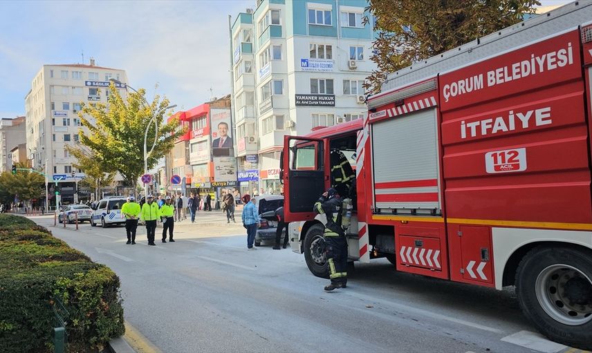 Çorum'da seyir halindeki bir otomobilde çıkan yangın, çevredekilerin hızlı müdahalesiyle kontrol altına alındı.