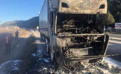 Çorum'un Osmancık ilçesinde, seyir halindeyken yangın çıkması sonucu bir tır kullanılamaz hale geldi. D-100 kara yolu Kalinse mevkisi'nde, İlhan Demir yönetimindeki 05 KL 061 plakalı tırın motor bölümünde yangın meydana geldi.