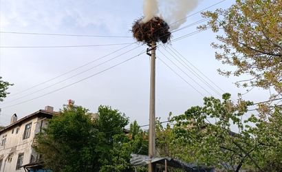 Çorum'un Dodurga ilçesindeki bir elektrik direğinde çıkan yangında leylek yuvası kullanılamaz hale geldi.
