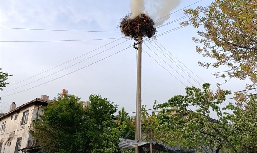 Çorum'un Dodurga ilçesinde meydana gelen yangın, bir elektrik direğinde bulunan leylek yuvasını etkisi altına aldı. Yangının çıkış nedeni ise elektrik kontağı olarak değerlendiriliyor.