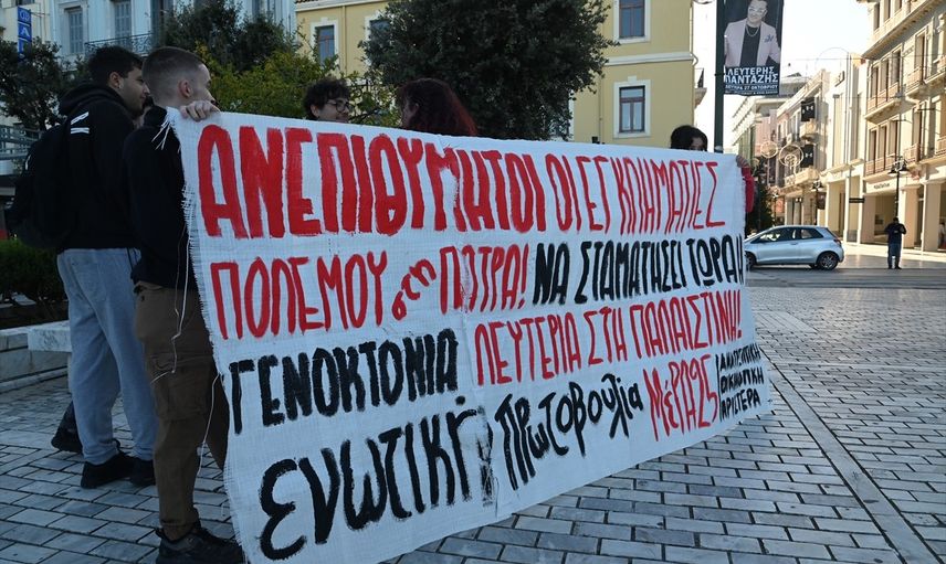 Rota değişikliğine rağmen Patra Limanı'nda bekleyen eylemciler, İsrail'in Filistin'e yönelik saldırılarını protesto etmeye devam etti.