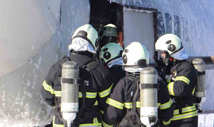 Alarm durumuna geçen Havalimanı Kurtarma ve Yangınla Mücadele (ARFF) ekipleri kısa sürede olay yerine ulaştı. ARFF ekip liderinin ilk raporunda rüzgarın 21 pist yönünden 5 knot estiği, sağ kanadın alev aldığı ve kabin ekibinin acil tahliye slaydını devreye soktuğu bildirildi. Senaryo gereği tahliye sırasında yaralıların bulunduğu ve uçak içinde mahsur kalan yolcu ile mürettebat tespit edildi.