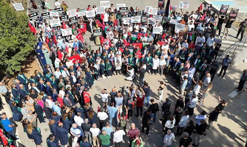 Katılımcılar ellerinde Türk ve Filistin bayrakları taşıyarak kampüste yürüdü. Öğrencilerin Kur'an-ı Kerim okumasının ardından destek amacıyla gökyüzüne balon bırakıldı.